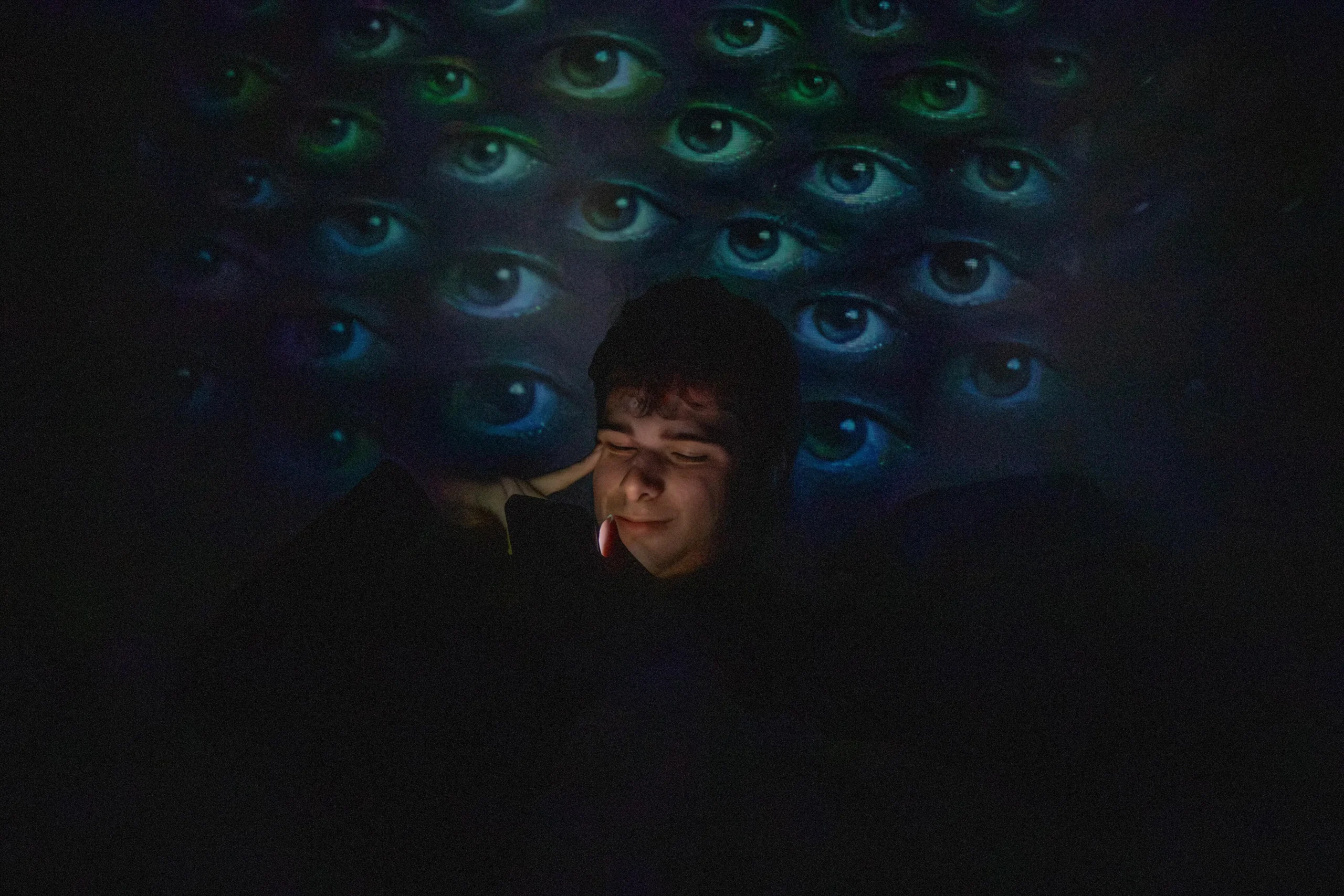 Série vychází z osobní zkušenosti. Jako člověk, který chce se sociálními sítěmi pracovat, jsem v nich zároveň sám chycen. Neustálé sledování, porovnávání i tlak na výkon se postupně promítají do psychiky, spánku i vnímání sebe sama.