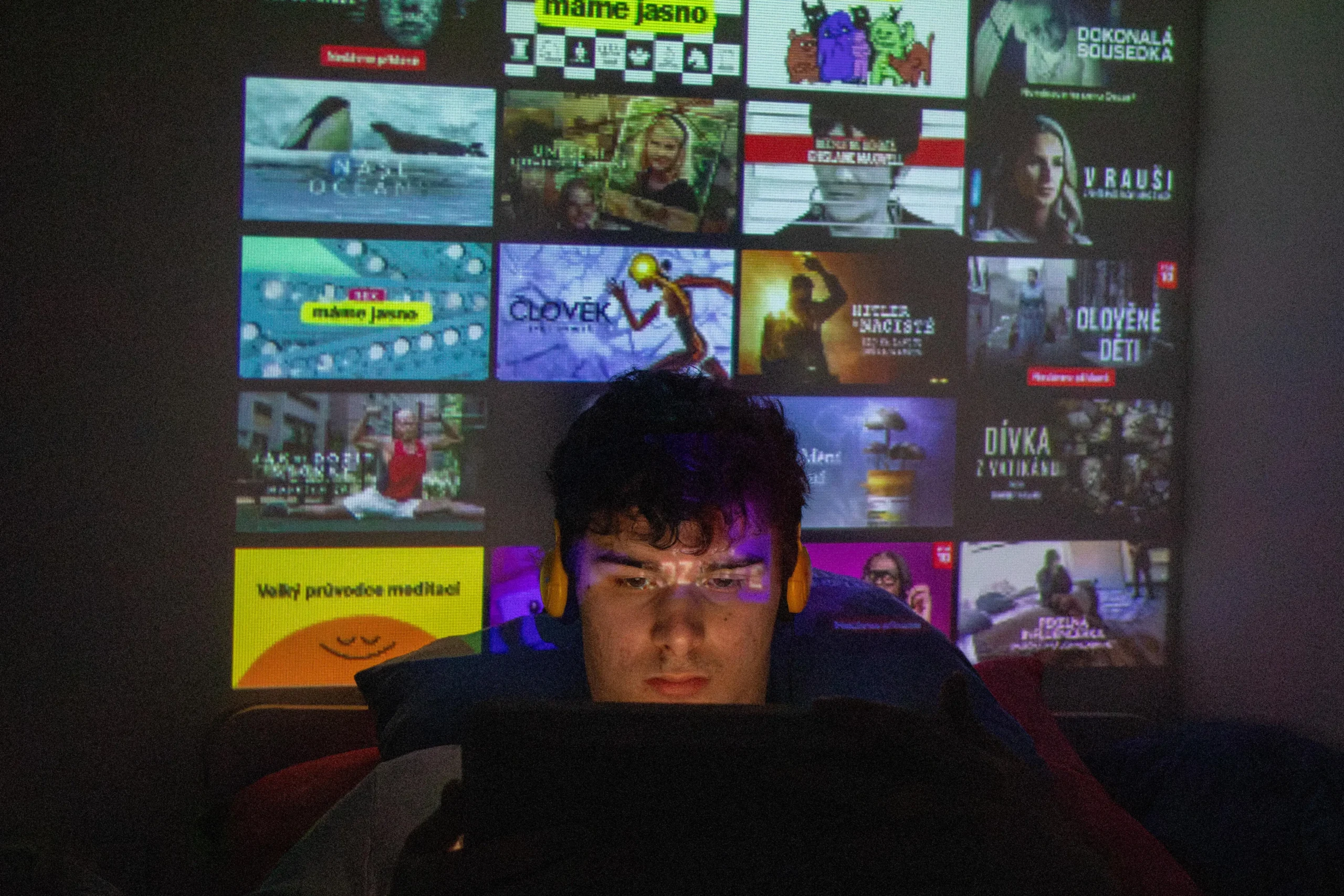 Ve své práci propojuji digitální prostředí s fyzickým prostorem pomocí projekce – online obsah se promítá přímo do mého pokoje a na mé tělo.
